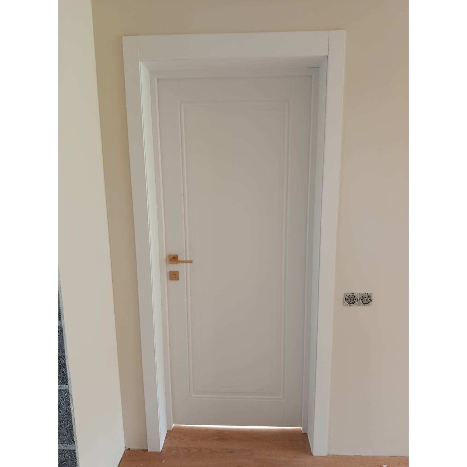 Durvis "CLASSIK 1" balta emalja RAL 9016, ar zelta furnitūru