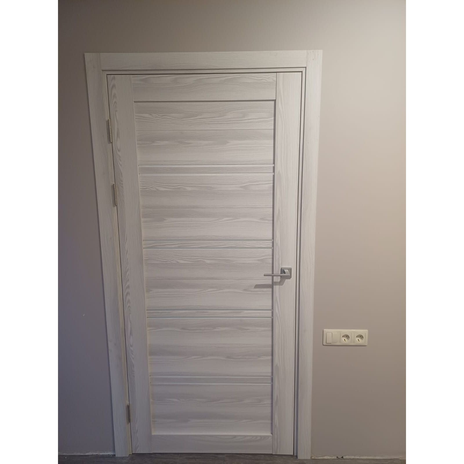 Дверь "LINE PREMIUM 4" клен ледяной, с хромовой фурнитурой