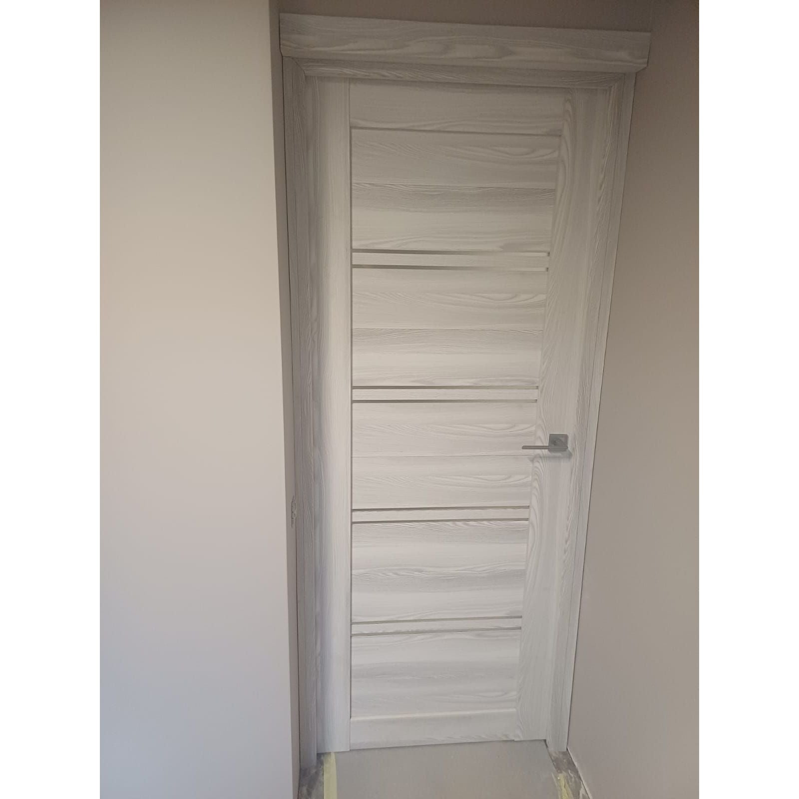 межкомнатная дверь "LINE PREMIUM 4" клен леданой со стеклами, с покрытием экошпон