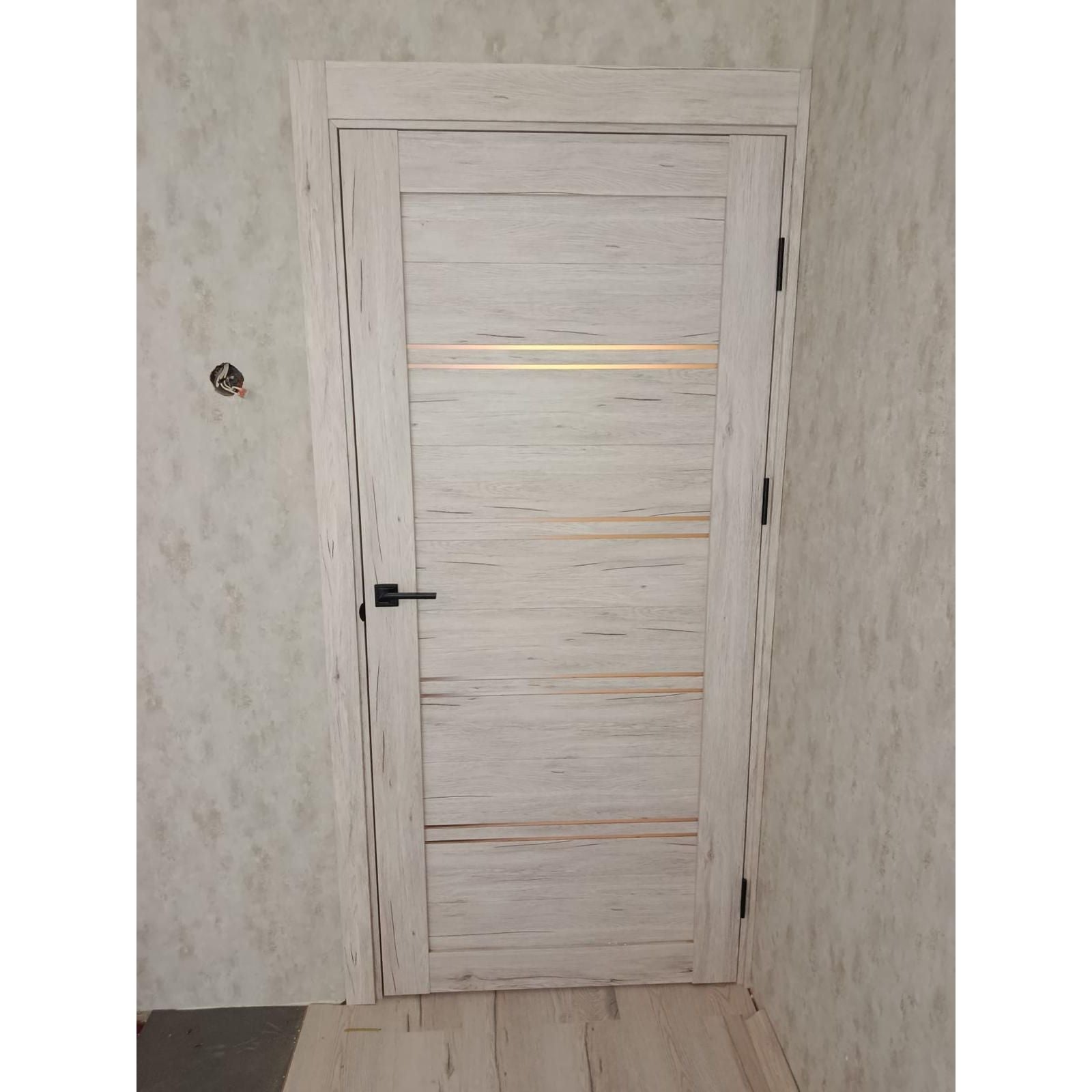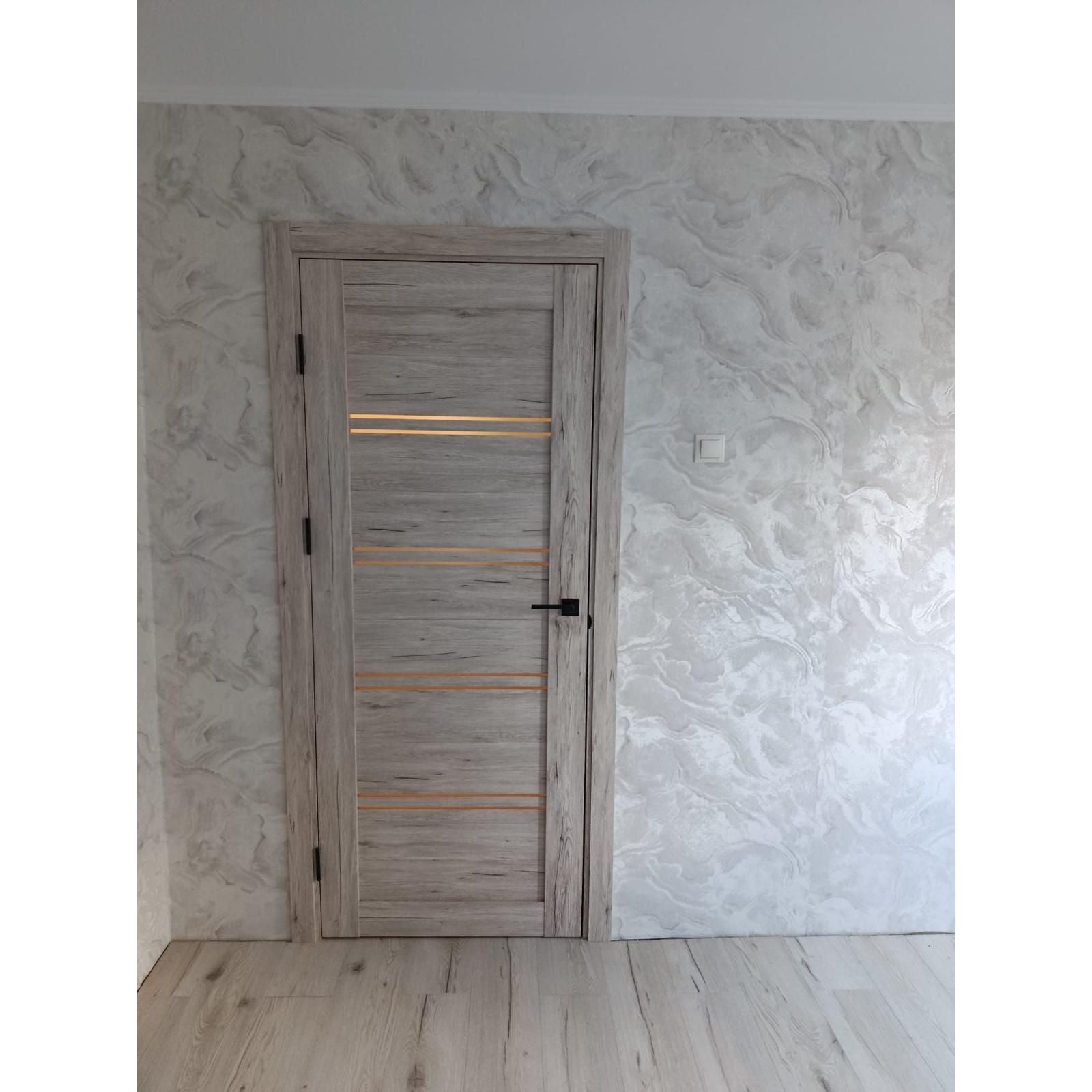 межкомнатная дверь "LINE PREMIUM 4" дуб Halifax со стеклами, с покрытием экошпон